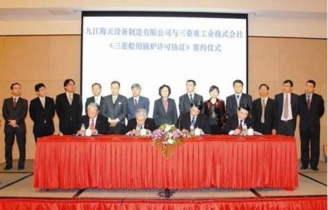 中船集團(tuán)消息:2月28日,中船集團(tuán)公司下屬的九江海天設(shè)備制造有限公司與日本三菱重工業(yè)株式會(huì)社在上海舉行了《三菱船用鍋爐許可協(xié)議》的簽約儀式。這標(biāo)志著雙方的合作正式啟動(dòng),九江海天將引進(jìn)日本三菱船用鍋爐許可證技術(shù),促進(jìn)中船集團(tuán)公司與日本三菱重工的共同發(fā)展。 中船集團(tuán)公司副總經(jīng)理路小彥在會(huì)見日本三菱重工客人時(shí)表示,多年來,中船集團(tuán)公司與日本三菱重工一直有著良好的合作。去年6月,中船集團(tuán)公司與日本三菱重工簽訂了船用鍋爐合作意向書。經(jīng)過近半年的交流和洽談,九江海天與日本三菱重工就引進(jìn)船用鍋爐制造技術(shù)達(dá)成一致意見。此次鍋爐項(xiàng)目的合作不僅填補(bǔ)了中船集團(tuán)公司船用鍋爐配套業(yè)務(wù)的空白,也標(biāo)志著中船集團(tuán)公司與日本三菱重工的合作進(jìn)入了一個(gè)新階段。相信隨著中船集團(tuán)公司與日本三菱重工的不斷發(fā)展,雙方未來的合作空間將會(huì)越來越大。 日本三菱重工原動(dòng)機(jī)事業(yè)本部副事業(yè)本部長(zhǎng)和仁正文在發(fā)言中指出,作為日本船用鍋爐產(chǎn)量第一的企業(yè),三菱重工擁有先進(jìn)的技術(shù)和管理方式。通過此前的多次交流發(fā)現(xiàn),九江海天不僅在工廠設(shè)備、生產(chǎn)能力、品質(zhì)保證等方面比較過硬,而且工作人員也有較高的技術(shù)水平與工作熱忱,是非常值得信賴的合作伙伴。為了加強(qiáng)今后的合作,三菱重工將毫無保留地進(jìn)行技術(shù)支援與營(yíng)銷支持,與中船集團(tuán)公司的造船事業(yè)以及九江市的經(jīng)濟(jì)共同發(fā)展。 據(jù)介紹,鍋爐產(chǎn)品是九江海天重點(diǎn)開發(fā)的產(chǎn)品,這與三菱重工欲在中國(guó)做大船用鍋爐市場(chǎng)的理念不謀而合。此次雙方合作的鍋爐產(chǎn)品將主要涉及燃油鍋爐、廢氣鍋爐、燃油/廢氣組合鍋爐,蒸發(fā)量為2~55蒸噸,其配套范圍基本上覆蓋了國(guó)內(nèi)的現(xiàn)有市場(chǎng)船型。