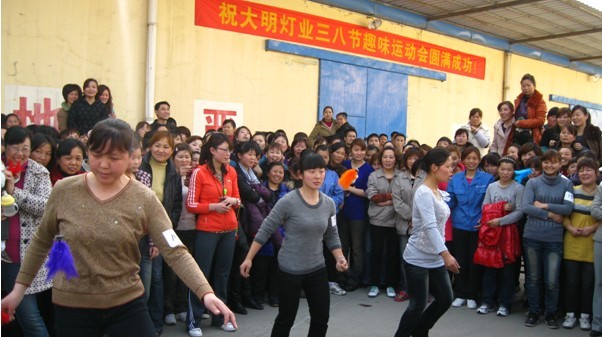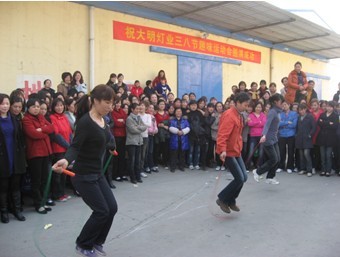 三八節(jié)到了,在全國人民都在為這個女性專享的節(jié)日而忙活的時候,大明燈業(yè)的600多名女職工都在干什么呢? 昨天,也正三八節(jié)的下午15:30—17:30分,大明燈業(yè)第一屆三八節(jié)趣味運動會在總廠倉庫廠區(qū)隆重開賽,100名女職工參加了鍵球、呼啦圈、跳繩和拔河的四項比賽,在眾多觀眾的歡笑和喝彩中,品質(zhì)部職工一舉奪得跳繩和呼啦圈兩個項目的冠軍,同時獲得拔河亞軍和鍵球季軍,以總積分第一的成績奪得趣味運動會總冠軍頭銜,7號自動線和二車間分別獲得二、三名。