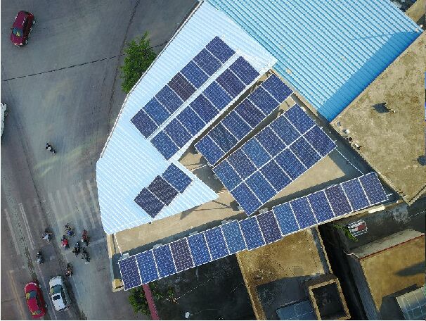 業(yè)主樓頂上裝滿了多晶硅太陽(yáng)能板