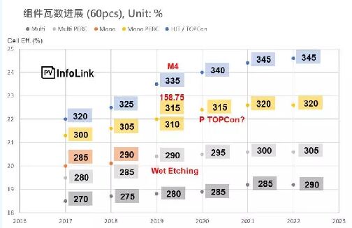 硅片大小與厚度的轉(zhuǎn)變 由于電池提效越發(fā)困難,2018年單、多晶硅片陸續(xù)出現(xiàn)各種大小的嘗試,為了更高的組件瓦數(shù)輸出,硅片、組件的面積變大趨勢(shì)已更加明確,預(yù)期明年超過(guò)157mm尺寸的硅片產(chǎn)品能占到全年2成的需求量。 單晶方面,N型組件、臺(tái)灣組件等以小眾、高效等市場(chǎng)為目標(biāo)的廠商,需要再拉高組件瓦數(shù)與性價(jià)比,故幾乎逐漸調(diào)整硅片至M4尺寸。國(guó)內(nèi)企業(yè)則是以晶科為首開(kāi)始主推158.75mm的尺寸,若陸續(xù)有其他垂直整合大廠跟進(jìn),市場(chǎng)可能分化為垂直整合廠158.75mm與非垂直整合廠維持M2兩種尺寸。多晶硅片面積目前看來(lái)較沒(méi)有統(tǒng)一化的跡象,多由一體廠自行推動(dòng)。 在厚度的部分,為了降本,有越來(lái)越多產(chǎn)線調(diào)適到能夠采用160um厚度的單晶硅片,而多晶在薄化的過(guò)程中仍舊屈居劣勢(shì)。 電池片、組件技術(shù)更上一層樓 就像2018年P(guān)ERC取代常規(guī)單晶一樣,SE在2019年也將成為產(chǎn)線的標(biāo)準(zhǔn)配備,接下需視TOPCon在P型單晶電池片上是否能在有突破,但無(wú)論如何P型單晶電池片的提效空間已越來(lái)越小,后續(xù)組件效率的提升將由組件技術(shù)來(lái)接棒達(dá)成。 今年看來(lái),半片組件為所有組件技術(shù)中設(shè)備、良率、實(shí)際產(chǎn)量都相對(duì)成熟的技術(shù)路線,尤其今年下半市場(chǎng)接受度明顯提升,預(yù)期明年會(huì)有更多廠家更大幅度的將產(chǎn)線升級(jí)為半片。 多主柵及疊瓦技術(shù)肯定也是未來(lái)的主流技術(shù)趨勢(shì),但由于技術(shù)、設(shè)備成熟度等都還有待時(shí)間醞釀,故PVInfoLink預(yù)期爆發(fā)的時(shí)間點(diǎn)會(huì)是在2020年之后。 在雙面組件部分,雖PERC電池片做成雙面發(fā)電幾乎沒(méi)有額外的成本提升,但雙面組件目前市場(chǎng)拓展速度仍稍顯緩慢,明年雙面發(fā)電組件的出貨預(yù)期以中國(guó)內(nèi)需為主,海外則隨終端逐漸認(rèn)知到雙面發(fā)電組件的增益而緩步增長(zhǎng)。