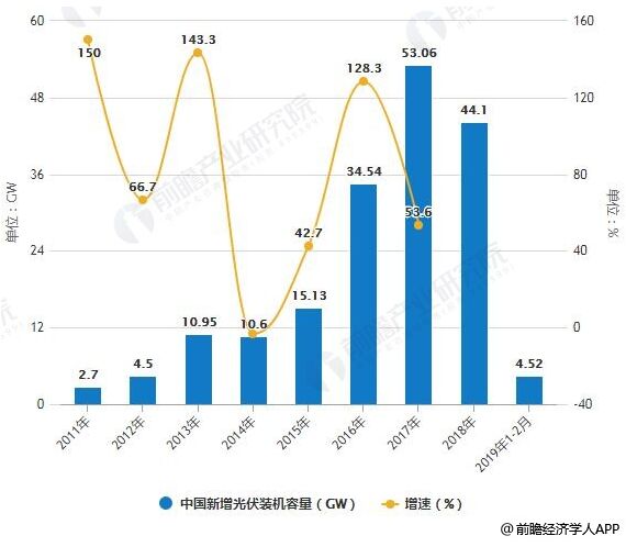 2011-2019年1-2月中國新增光伏裝機容量統(tǒng)計情況