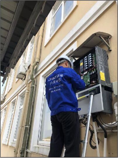 (圖為正泰安能電力系統(tǒng)工程有限公司電站運維售后技術(shù)人員正在對衢州市龍游縣湖鎮(zhèn)鎮(zhèn)安裝的俞先生家的電站進行維修處理)
