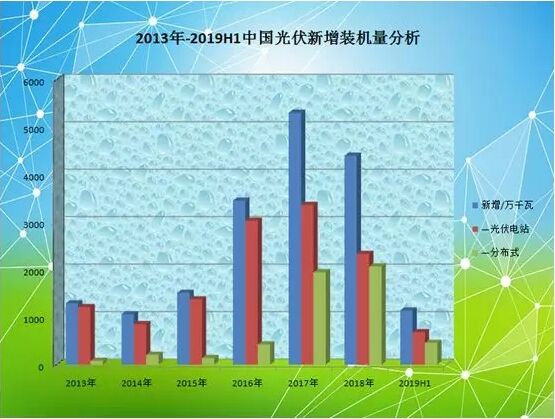 毋庸置疑,光伏產(chǎn)業(yè)已經(jīng)成為中國在世界上的一張新名片。 自2013年以來,在國家政策的大力支持下,中國光伏市場快速崛起,迅速發(fā)展成為全球最大的太陽能光伏市場,取得了舉世矚目的輝煌成就;同時,也一舉擺脫了困擾國內(nèi)光伏產(chǎn)業(yè)多年的“兩頭在外”的尷尬局面。 伴隨著技術(shù)水平不斷提高,光伏發(fā)電成本持續(xù)下降,企業(yè)競爭力日益增強,中國光伏產(chǎn)業(yè)規(guī)模不斷擴(kuò)大,市場占有率已位居世界前列,如今已經(jīng)成為我國具有國際競爭優(yōu)勢的戰(zhàn)略性新興產(chǎn)業(yè),在推動能源轉(zhuǎn)型中發(fā)揮著十分重要作用。 從近幾年的數(shù)據(jù)統(tǒng)計顯示,中國光伏新增裝機量已經(jīng)連續(xù)6年位居全球第一,累計裝機規(guī)模已連續(xù)4年位居全球第一。 崛起之路得益于國內(nèi)政策的大力扶持,2013年中國光伏市場開啟了新紀(jì)元。 2013年7月15日,為規(guī)范和促進(jìn)光伏產(chǎn)業(yè)健康發(fā)展,國務(wù)院辦公廳下發(fā)了《國務(wù)院關(guān)于促進(jìn)光伏產(chǎn)業(yè)健康發(fā)展的若干意見》,意見提出,2013—2015年,年均新增光伏發(fā)電裝機容量1000萬千瓦左右,到2015年總裝機容量達(dá)到3500萬千瓦以上。 隨后三年時間里,中國光伏年增裝機均在10GW以上。其中,2013年我國新增光伏裝機量達(dá)到12.92GW,同比增長超過200%,明顯高于預(yù)期。2014年受光伏政策、電站質(zhì)量、投資資金緊張等因素影響,新增裝機略有減少;到2015年新增裝機已超過15GW。然而,在分布式光伏裝機量上,國內(nèi)發(fā)展依然相對遲緩。 2016年12月,為促進(jìn)太陽能產(chǎn)業(yè)持續(xù)健康發(fā)展,國家能源局下發(fā)了《太陽能發(fā)展“十三五”規(guī)劃》,其中提到,至2020年底,太陽能發(fā)電裝機達(dá)到1.1億千瓦以上。同時,分布式光伏發(fā)展開始明顯提速。 事實上,2016年-2018年,國內(nèi)新增光伏裝機量開始高歌猛進(jìn),分別達(dá)到34.54GW、53.06GW、44GW。截至2017年底,累計裝機量已經(jīng)超過130GW,也就是說,“十三五”規(guī)劃目標(biāo)已提前3年完成。