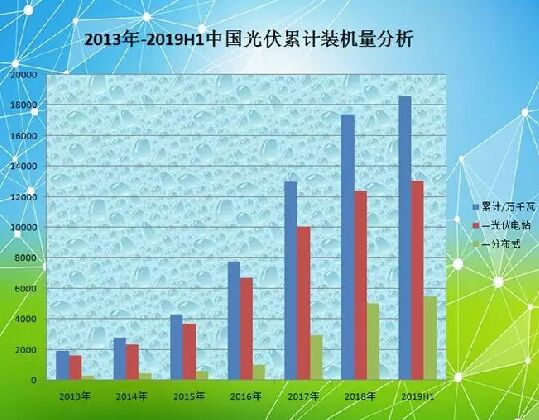 根據(jù)統(tǒng)計數(shù)據(jù)計算,自2013年啟動開始,截止2018年底,中國光伏裝機總量達(dá)到174.19GW,年復(fù)合增長率超過73%,較之2012年的6.5GW增長約26倍! 不久前,國家發(fā)改委能源研究所研究員王斯成也曾表示,過去10年,中國光伏取得了令人驕傲的成績:從中國光伏全產(chǎn)業(yè)鏈產(chǎn)品的全球市占率來看,2018年,多晶硅占比57.8%,電池和組件均超過70%,而硅錠硅片更是高達(dá)90%左右;從市場資源開發(fā)來看,國內(nèi)市場2107年新增裝機量53GW,2018年的44GW,穩(wěn)居全球最大的光伏市場。此外,10年來光伏產(chǎn)品和發(fā)電成本下降超過90%,生產(chǎn)技術(shù)水平和設(shè)備國產(chǎn)化率均大幅度提高,光伏年產(chǎn)值已超過5000億元。 旺季來臨 近日,國家能源局發(fā)布了2019年上半年光伏發(fā)電建設(shè)運行情況,數(shù)據(jù)顯示,截至2019年6月底,全國光伏發(fā)電累計裝機185.59GW,同比增長20%,新增11.4GW。其中,集中式光伏發(fā)電裝機130.58GW,同比增長16%,新增6.82 GW;分布