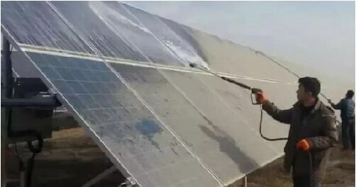 光伏組件的清洗要點 1光伏組件清潔的必要性 光伏發(fā)電系統(tǒng)在運行中,要經(jīng)常保持光伏組件采光面的清潔。因為灰塵遮擋是影響光伏發(fā)電系統(tǒng)發(fā)電能力的第大 因素, 其主要影響有: ①遮蔽太陽光線,影響發(fā)電量 ②影響組件散熱,從而降低組件轉換效率 ③帶有酸堿性的灰塵長時間沉積在組件表面,侵蝕組件玻璃表面、造成玻璃表面粗糙不平,使灰塵進一步積聚, 同時增加玻璃表面對陽光的漫反射,降低組件接受陽光的能力 ④組件表面長期積聚的灰塵、樹葉、鳥糞等,會造成組件電池片局部發(fā)熱,造成電池片、背板燒焦炭化,甚至引起火災。所以,組件需要不定期地進行擦拭清潔。 2光伏組件的清潔方式 光伏組件的清潔可分為:普通清掃和水沖清洗兩種方式。如組件積有灰塵,可用干凈的線撣子或抹布對組件表面附著的干燥浮塵、樹葉等進行清掃。對于緊附在玻璃表面的硬性異物,如泥土、鳥糞、粘稠物體,則可用稍微硬些的塑料或木質刮板進行刮除處理,防止破壞玻璃表面。如有污垢清掃不掉時,可用清水進行沖洗。清洗可使用拖把或柔性毛刷來進行,如遇到油性污物等,可用洗潔精或肥皂水等對污染區(qū)域進行單獨清洗。清洗完畢后可用干凈的抹布將水跡擦干。切勿用有腐蝕性的溶劑清洗或用硬物擦拭。目前,組件清潔方式主要有人工清潔、灑水車、智能機械等方式。 3光伏組件清洗注意事項 ①光伏組件的清洗一般選擇在清晨、傍晚、夜間或陰雨天進行。主要考慮以下幾個原因: a.避免在高溫和強烈光照下擦拭清洗組件可能造成的對人身的電擊傷害以及對組件的破壞; b.防止清洗過程中因為人為陰影造成光伏方陣發(fā)電量的損失,甚至發(fā)生熱斑效應: c.中午或光照較好時組件表面溫度相當高,防止冷水激在玻璃表面引起玻璃炸裂或組件損壞。同時在早晚清洗時,也需要選擇陽光暗弱的時間段進行。也可以考慮利用陰雨天進行清洗,因為有降水的幫助,清洗過程相對高效和徹底。 ②光伏組件鋁邊框及光伏支架或許有鋒利的尖角,在清洗過程中需注意清洗人員安全,應穿著佩戴工作服、帽子、絕緣手套等安全用品,防止漏電、碰傷等情況發(fā)生。在衣服或工具上不能出現(xiàn)鉤子、帶子、線頭等容易引起牽絆的部件。 ③在清洗過程中,禁止踩踏或其他方式借力于光伏組件、導軌支架、電纜橋架等光伏系統(tǒng)設備。 ④嚴禁在大風、大雨、雷雨或大雪天氣下清洗光伏組件。冬季清潔應避免沖洗,以防止氣溫過低而結冰,造成污垢堆積:同理也不要在面板很熱時用冷水沖洗。 ⑤嚴禁使用硬質和尖銳工具或腐蝕性溶劑及堿性有機溶劑擦拭光伏組件。禁止將清洗水噴射到組件接線盒、電纜橋架、匯流箱等設備。清潔時水洗設備對組件的水沖擊壓力必須控制在一定范圍內,避免沖擊力過大引起組件電池片的隱裂。