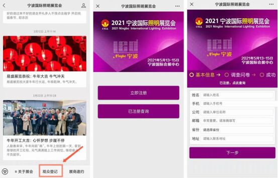 一、官網(wǎng)觀眾預(yù)登記 進(jìn)入寧波照明展官網(wǎng)
