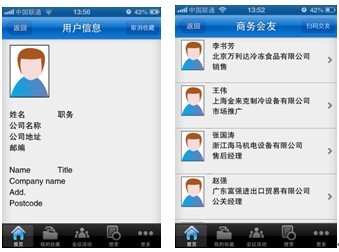 (二)商務(wù)會友 掃碼功能不僅能識別產(chǎn)品的二維碼,還可以拍攝參展人員或觀眾胸卡上的條形碼。只需輕輕一拍,便可獲取對方的身份信息,并自動記錄在“商務(wù)會友”里,省去交換名片的環(huán)節(jié)。(見圖3、4)