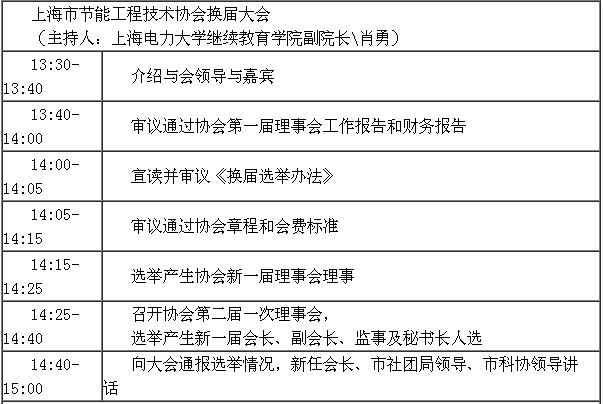 上海市節(jié)能工程技術(shù)協(xié)會(huì)換屆大會(huì)暨創(chuàng)新論壇 會(huì)議議程