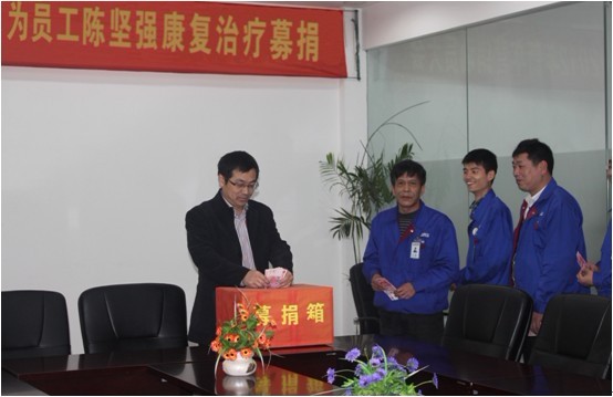 陳堅(jiān)強(qiáng)同志是上海瀚藝公司保安,自2007年加入瀚藝以來,工作踏實(shí)認(rèn)真。然而去年11月,他因患急性腎功能衰竭而住院治療至今。這突如其來的打擊讓陳堅(jiān)強(qiáng)本來就不富裕的家庭一籌莫展。 集團(tuán)有關(guān)領(lǐng)導(dǎo)得知情況后高度重視,并前往探望。3月15日,集團(tuán)工會(huì)向集團(tuán)全體員工發(fā)出愛心捐款倡議。陳堅(jiān)強(qiáng)的病情牽動(dòng)了每一個(gè)瀚藝人的心,大家紛紛伸出友愛之手,踴躍捐款。短短五天的時(shí)間,集團(tuán)工會(huì)就收到上海瀚藝、江蘇瀚藝283名員工的捐款共計(jì)26900元。