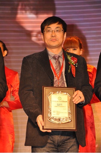 欣盛杯2012年度2012年度中國空調(diào)行業(yè)經(jīng)營成就人物獎(jiǎng)--皇冠明珠獎(jiǎng)?lì)C獎(jiǎng)現(xiàn)場 瀚藝集團(tuán)總裁潘亞平接受頒獎(jiǎng)