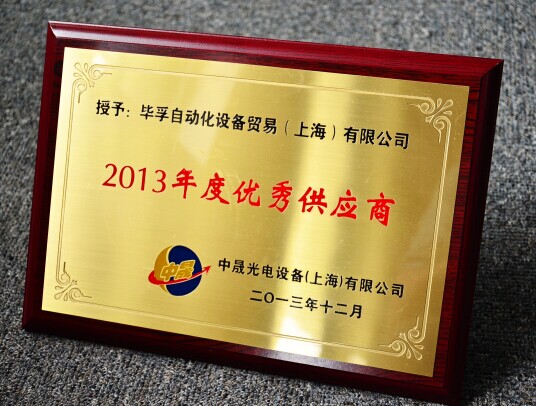 [2014年6月,中國]2014年6月,中晟光電設(shè)備(上海)有限公司授予倍福公司“2013優(yōu)秀供應商”稱號。這項榮譽正是倍福公司長期為客戶提供優(yōu)良產(chǎn)品和技術(shù)支持, 并獲得客戶信任和肯定的最佳佐證。倍福中國光伏/半導體行業(yè)經(jīng)理王濤、德國倍福海外事業(yè)部負責中國業(yè)務(wù)的銷售經(jīng)理譚丕昀到場接受頒獎。 贏得客戶的信任、提升客戶的競爭力,是倍福不斷追求的目標。在與客戶的合作當中,倍福已不僅僅是客戶供應商的角色,更是客戶的合作伙伴,共同實現(xiàn)雙方互利共贏的良好局面。 中晟光電設(shè)備(上海)有限公司是由一批來自世界知名的半導體設(shè)備公司和LED MOCVD設(shè)備公司的技術(shù)專家和管理團隊所創(chuàng)建,從事與LED芯片技術(shù)和工藝制成相關(guān)的關(guān)鍵設(shè)備的生產(chǎn)企業(yè)。公司旨在建立一個以中國為基地,在LED芯片生產(chǎn)設(shè)備的技術(shù)研發(fā)和制造領(lǐng)域內(nèi)達到世界領(lǐng)先水平的企業(yè)。中晟光電也是最先實現(xiàn)LED MOCVD設(shè)備國產(chǎn)化的公司。 中晟光電從最初為其MOCVD設(shè)備控制系統(tǒng)選型至最終選定倍?刂葡到y(tǒng)的整個期間,經(jīng)歷了一個漫長的過程,他們?yōu)榇艘沧隽舜罅考氈碌恼{(diào)研工作。選型確定后,經(jīng)過3年的產(chǎn)品使用,他們對當初的這個選擇不再有任何疑問。期間,中晟公司得到了倍福公司的大力支持,包括技術(shù)上的支持、產(chǎn)品的交貨期以及售后服務(wù)。 “缺少倍福的支持,中晟也無法獲得成功。在參觀倍福德國總部時,倍福公司的高效精準的控制系統(tǒng)、高水平的工程技術(shù)人員都給我留下了深刻的印象” 中晟光電電氣事業(yè)總監(jiān)孫東曦這樣說道!拔覀儗Ρ陡5募夹g(shù)予以充分的肯定,并相信在未來倍福能提供給我們更多的支持。中晟公司也十分樂意向行業(yè)內(nèi)推薦倍福產(chǎn)品,尤其是倍;赑C的控制系統(tǒng),它確實是一款相當不錯的產(chǎn)品”。 新聞圖片
