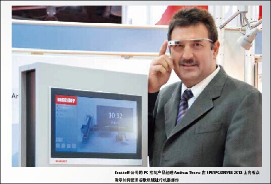 去年在德國紐倫堡舉辦的“2013 年德國紐倫堡工業(yè)自動化及元件展覽會(SPS/IPC/DRIVES 2013)上,Beckhoff 展出了通過專注于谷歌眼鏡的技術研究開發(fā)而成的針對機械操作的最新解決方案。有了具有上網功能的谷歌眼鏡,狀態(tài)或對話消息可以通過一個頭戴式顯示器直接投射到人眼中。在線信息和通信也可以用這種創(chuàng)新的設備實現(xiàn),且錯誤信息可以使用觸摸板進行確認。Beckhoff 公司的 PC 控制產品經理 Andreas Thome 堅定地認為,谷歌眼鏡是互聯(lián)網和自動化技術相融合推動工業(yè) 4.0 發(fā)展的最突出的例子。 Beckhoff 公司的 PC 控制產品經理 Andreas Thome 在 SPS/IPC/DRIVES 2013 上向觀眾演示如何使用谷歌眼鏡進行機器操作。 是什么讓谷歌的這些“增強現(xiàn)實眼鏡”從競爭中脫穎而出,用作工業(yè)環(huán)境中的控制元件? Andreas Thome:谷歌眼鏡配置包括頭戴式顯示器、攝像頭、麥克風和用作揚聲器的骨傳導耳機 — 它還配備了振動傳感器并在耳機側面集成了一個觸摸板。有了這些功能,谷歌眼鏡非常適合用于可視化、診斷和服務,以及技術干預和個人通信。不同于傳統(tǒng)的控制理念,該設備屬于被稱為“可穿戴計算”的創(chuàng)新技術 — 一組每天可以通過用戶佩戴來大幅提高其連通性的設備。事實上,很多這些設備現(xiàn)在都已經具有現(xiàn)代智能手機所具備的所有功能。更重要的是,谷歌眼鏡型設備使用起來都很方便,因為其半透明遮陽板符合人體工學,且主要都是免提操作。最大的優(yōu)點在于 — 也著眼于工業(yè)自動化 — 現(xiàn)有的移動計算技術可以在我們的感官知覺或我們的肢體動作沒有任何限制的情況下使用 — 而且無需電線或電纜。 如何將谷歌眼鏡與 PC 控制整合在一起? Andreas Thome:使用 Beckhoff 的 TwinCAT 自動化軟件可以將谷歌眼鏡與控制技術輕松集成在一起。眼鏡與萬維網服務器通訊,該服務器提供了通過 TwinCAT 控制的機器狀態(tài)信息。眼鏡接收此狀態(tài)信息并以信號或錯誤消息的形式表現(xiàn)出來,甚至還可以指出任何問題的確切位置。確認和復位機器狀態(tài)等工作也可在現(xiàn)場通過谷歌眼鏡完成。 在哪些情況下可以使用此方案? Andreas Thome:潛在的應用場景可以被歸類為“直接或間接”。例如,操作人員可以使用眼鏡“直接”監(jiān)控機器或甚至采取行動來直接改變或更正機器狀態(tài),而不總是需要在現(xiàn)場完成。對于大型機器和生產設備,操作人員需要在設備周圍走動并檢查特定臨界點的工藝狀態(tài)值,同時查看設備是運作情況。必要時,操作人員可以采取手動操作,因為雙手都是自由的!伴g接”選項涉及到信息的收集和保存,不完全依賴于正在運行的進程。這些選項包括,例如,研究制造商有關特定機器組件的文檔資料,在 Internet 上搜索信息,并通過電子郵件和支持視頻聊天的聊天工具進行人際互動。然而,直接和間接應用的組合也是可能的。即使一臺機器正在運行,操作人員也可以與專家聯(lián)系并通過眼鏡將正在運轉的機器的視頻發(fā)送給專家,以咨詢一些具體的問題。隨后,專家可以給現(xiàn)場操作人員提供技術支持 — 以視頻或語音消息的形式 — 這樣就可以采取相應的糾正措施。這是被描述為“你看到的就是我看到的”(WYSIWIS)的 IT 概念也可以在工業(yè)環(huán)境下應用的范例。 靜態(tài)和動態(tài)的機器狀態(tài)信息可以被投射到谷歌眼鏡的頭戴式顯示器上。 如果出現(xiàn)錯誤,谷歌眼鏡會輕輕振動,提醒操作人員注意出錯消息。一旦錯誤被糾正,該消息可以直接通過增強現(xiàn)實眼鏡復位。 有關在日常生活中使用這種新的控制技術有什么新的想法嗎? Andreas Thome:有許多不同的方法來實現(xiàn)。例如,維修工程師可以使用集成的攝像頭捕捉到電機或限位開關的 QR 碼,然后檢索有關其功能、歷史狀態(tài)或當前狀態(tài)的信息。另一個辦法是瀏覽包含機器控制軟件相關信息的網站 — 大小為 640×360 像素的分辨率,無需使用鼠標 — 這將是可行的,如果原始資料被格式化為與增強現(xiàn)實眼鏡同時使用。操作人員可以查找由制造商定義的計算機設置,然后采取適當?shù)男袆。也可以編寫在谷歌眼鏡上本地運行的特殊應用程序,并能夠通過 WLAN 使用如 OPC UA 或 TwinCAT ADS 等協(xié)議建立與機器控制計算機的連接。作為谷歌眼鏡技術研究的一部分,Beckhoff 提供二進制和模擬變量的實時可視化應用程序作為本地程序。在所有這些情況下,可以顯示狀態(tài)數(shù)據(變量,誤差)。此外,操作人員可以使用谷歌眼鏡來修改設備設置或周期,如開始或停止生產步驟。 未來,谷歌眼鏡和類似的增強現(xiàn)實眼鏡將取代傳統(tǒng)控制面板和操作理念嗎? Andreas Thome:不會。憑借其眾多的選件,谷歌眼鏡是提高操作和控制理念的杰出開發(fā)成果,但它并不能夠成為一個完整的替代裝置來控制機器或生產設施。傳統(tǒng)的機械控制終端(帶觸摸屏或帶鍵盤的顯示器)不能完全被取代 — 因為其分辨率更高且可讀性更好,而且集成了關鍵的控制元件,如急停開關或操縱桿。也可以這樣說,可以實現(xiàn)基于谷歌眼鏡的完整“無接觸控制”的愿景。我們發(fā)現(xiàn),未來,最有可能的是傳統(tǒng)的接觸和創(chuàng)新的非觸摸方法的有機結合。請記住,觸碰增強現(xiàn)實眼鏡的側面比給出語音命