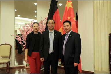 中國(guó)駐德大使史明德(中)與蔣錫培、陳曉芬合影