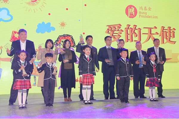 遠(yuǎn)東慈善基金會獲得鴻基金頒發(fā)的“愛的天使”榮譽 徐浩然(左四)上臺領(lǐng)獎