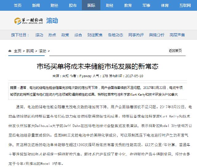 通常,電池的儲(chǔ)電性能會(huì)隨著充放電次數(shù)的增加而下降,用戶會(huì)面臨著續(xù)航不足問(wèn)題。2017年3月22日,電動(dòng)車領(lǐng)域領(lǐng)航的特斯拉宣布他們?cè)趧?dòng)力電池領(lǐng)域取得突破性的成果。特斯拉首席電池科學(xué)家Kurt Kelty和技術(shù)研發(fā)伙伴加拿大Dalhousie大學(xué)的Jeff Dahn在國(guó)際電池研討會(huì)暨展覽發(fā)表演講,表示特斯拉Model 3行駛48萬(wàn)公里后電池組容量衰減僅5%。提高NMC三元鋰電池中的某種化學(xué)成分,可以限制高壓下電池運(yùn)行時(shí)產(chǎn)生的有害氣體,而這種改進(jìn)后的電池單體能夠在超過(guò)1200次循環(huán)后依然有著優(yōu)秀的性能表現(xiàn)。以2萬(wàn)公里/年計(jì)算,普通車主要連續(xù)駕駛80年才能報(bào)廢一輛特斯拉汽車。新技術(shù)已經(jīng)實(shí)現(xiàn)了商業(yè)化,在特斯拉產(chǎn)品中得到使用,預(yù)計(jì)會(huì)是定于今年7月推出的Model 3轎車。 對(duì)于所有電池行業(yè)的人來(lái)說(shuō),這確是一個(gè)值得振奮的消息。燃油車與電動(dòng)車相比,哪個(gè)更有未來(lái)不言而喻。超長(zhǎng)續(xù)航能力以及能量衰減的電池問(wèn)題得以解決,電動(dòng)汽車的市場(chǎng)容量只是時(shí)間問(wèn)題。 電動(dòng)汽車的生產(chǎn)應(yīng)用市場(chǎng)是儲(chǔ)能產(chǎn)業(yè)成功商業(yè)化,取得迅速發(fā)展的表現(xiàn)之一。據(jù)不完全統(tǒng)計(jì),2015年中國(guó)低速電動(dòng)汽車產(chǎn)銷量約70萬(wàn)輛,2016年達(dá)到了120萬(wàn)輛。從電動(dòng)汽車的發(fā)展路線和電池技術(shù)水平來(lái)看,低速電動(dòng)車將是最近十年中國(guó)電動(dòng)汽車發(fā)展的市場(chǎng)主流,也是未來(lái)十年后新能源汽車產(chǎn)業(yè)的重要補(bǔ)充。 電池領(lǐng)域的技術(shù)性革新也向儲(chǔ)能產(chǎn)業(yè)展示了種種可能。去年,華為中央研究院瓦特實(shí)驗(yàn)室在第57屆日本電池大會(huì)上宣布在鋰離子電池領(lǐng)域?qū)崿F(xiàn)重大研究突破,推出業(yè)界首個(gè)高溫長(zhǎng)壽命石墨烯基鋰離子電池。實(shí)驗(yàn)結(jié)果顯示,以石墨烯為基礎(chǔ)的新型耐高溫技術(shù)可以將鋰離子電池上限使用溫度提高10℃,使用壽命是普通鋰離子電池的2倍。據(jù)國(guó)家統(tǒng)計(jì)局日前公布數(shù)據(jù),2017年1-2月份,中國(guó)鋰離子電池累計(jì)產(chǎn)量為114485萬(wàn)只,平均單月產(chǎn)量為57242萬(wàn)只。