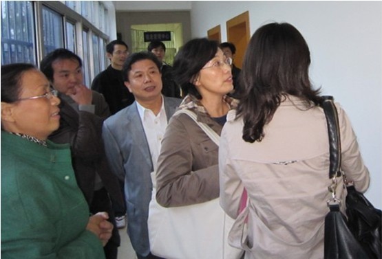 省節(jié)能中心孫偉明書(shū)記(左三)、李祖述副主任(左一)、甘曉紅科長(zhǎng)(左二),在聽(tīng)取沙市大學(xué)田運(yùn)芬副校長(zhǎng)使用大明燈業(yè)T5中標(biāo)產(chǎn)品的情況匯報(bào)