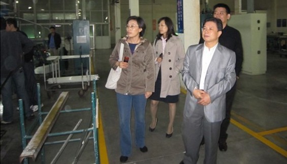 省節(jié)能監(jiān)察中心孫偉明書(shū)記(左一)、李祖述副主任(左三),在大明燈業(yè)銷(xiāo)售總監(jiān)文純陽(yáng)(右二)、燈具部主任謝冰(右一)的陪同下,檢查大明燈業(yè)T5中標(biāo)產(chǎn)品的生產(chǎn)情況。