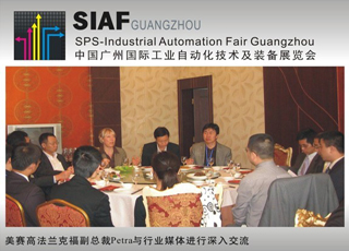 11月5日,SIAF GUANGZHOU 的主承辦單位--中國對外貿(mào)易廣州展覽公司、廣州富洋展覽有限公司、廣州光亞法蘭克福展覽有限公司以及德國美賽高法蘭克福展覽有限公司在上海召開了媒體見面會(huì),邀請了國內(nèi)外的自動(dòng)化行業(yè)媒體出席。美賽高法蘭克福展覽公司副總裁Petra Haarburger女士在會(huì)上做了發(fā)言,“SIAF2010中國廣州國際工業(yè)自動(dòng)化技術(shù)及裝備展覽會(huì)”在自動(dòng)化領(lǐng)域內(nèi)已經(jīng)引起了巨大反響,眾多國際知名品牌紛紛積極報(bào)名參與此次盛會(huì),主辦各方都對SIAF2010的前景充滿了信心和期待。 SIAF GUANGZHOU,即中國廣州國際工業(yè)自動(dòng)化技術(shù)及裝備展覽會(huì),是全球最大自動(dòng)化展---“SPS/IPC/DRIVES電氣自動(dòng)化展”與華南著名工控展---“CHIFA中國(廣州)國際工業(yè)控制自動(dòng)化及儀器儀表展”在中國的完美結(jié)合。經(jīng)過資源整合,展會(huì)將借鑒SPS成功辦展經(jīng)驗(yàn)和營銷模式投入運(yùn)行。